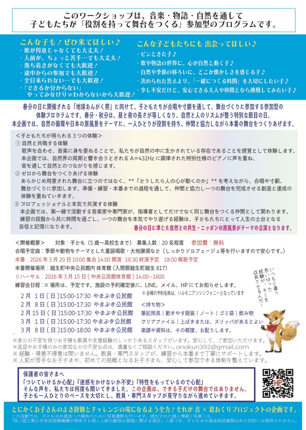 【募集】さぁ!きつねとkunikoと舞台をつくろう!春分の日 地球おんがく祭♪2026-1-23